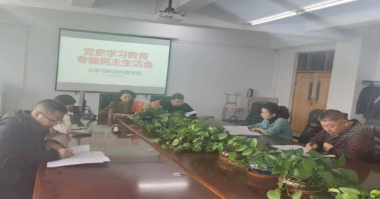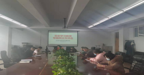 文学与新闻传播学院于1月16日召开党史学习教育专题民主生活会。党史学习教育第一巡回指导组组长、校统战部部长张秀文、副组长、纪委办公室副主任唐学明出席生活会,文学与新闻传播学院中心组全体成员参加会议。会议由文学与新闻传播学院党总支书记张一弘主持。