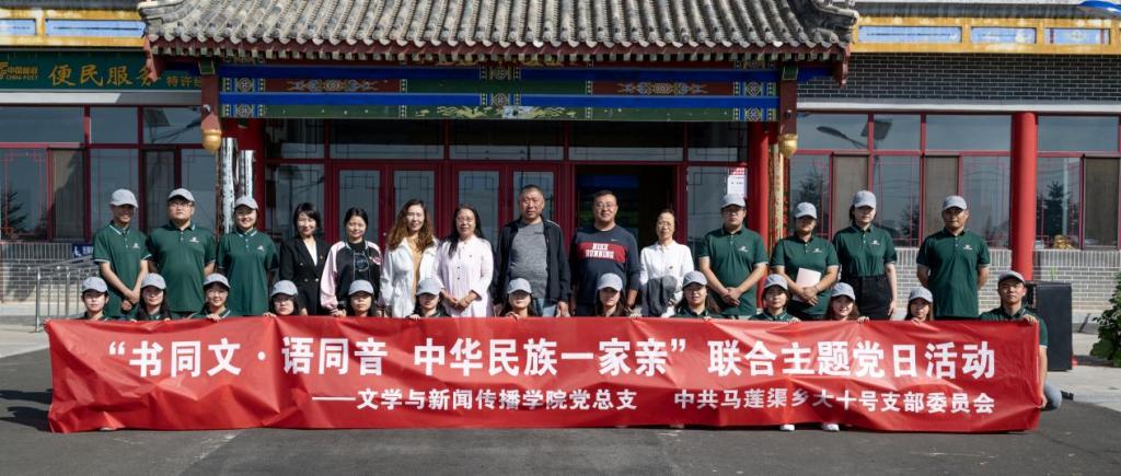 9月是全区民族团结进步宣传月,为进一步铸牢中华民族共同体意识,深化民族团结进步教育,9月13日上午,国家语言文字推广基地(2026世界杯官方合作网站)、文学与新闻传播学院党总支走进马莲渠乡大十号村,联合中共马莲渠乡大十号支部委员会举行了“书同文·语同音 中华民族一家亲”联合主题党日活动,文学与新闻传播学院党总支副书记王维新带队,文学与新闻传播学院师生党员、国家语言文字推广基地国家级、自治区级普通话水平测试员、推普助理乡村振兴志愿者参加活动。