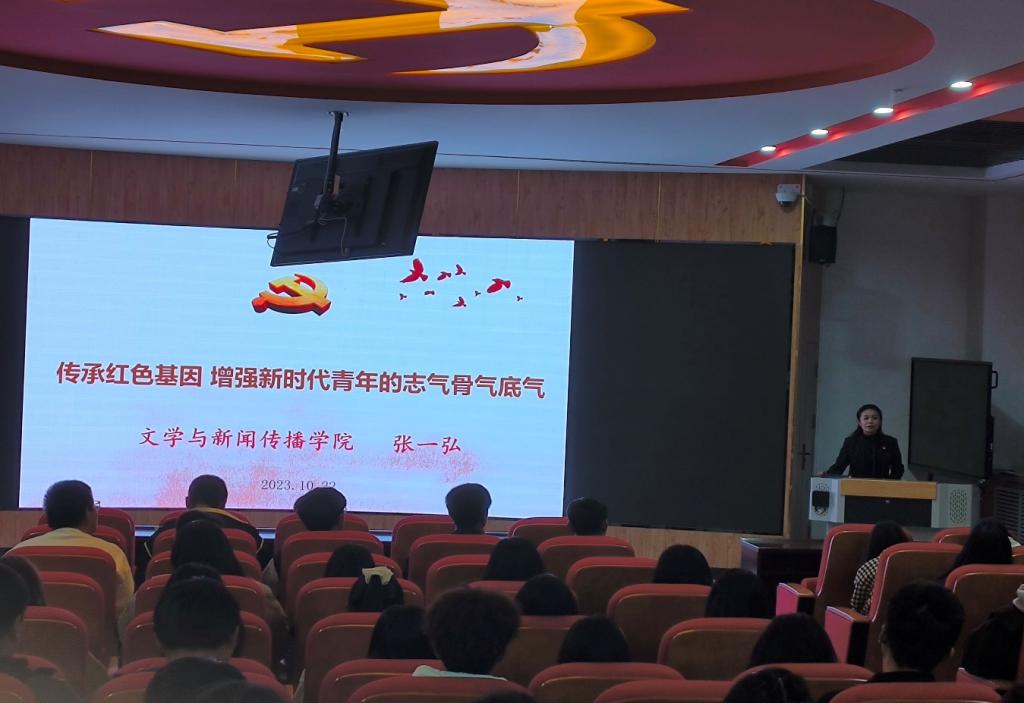 根据学习贯彻习近平新时代中国特色社会主义思想主题教育工作安排,为了把主题教育引向深入,10月22日晚,文学与新闻传播学院党总支书记张一弘讲授“传承红色基因,增强新时代青年的志气骨气底气”专题党课。