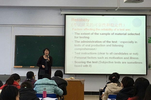闫晓云首先讲解了考试的类型和试卷质量的评判要素,即效度、信度、区分度、难度以及后效作用。同时,她还强调了出试卷和组织考试需要注意的问题,以及讲解了试卷成绩的分析、题目难度和区分度的计算方法,最后,运用具体的案例,闫晓云向教师们说明了如何规范进行试卷分析。