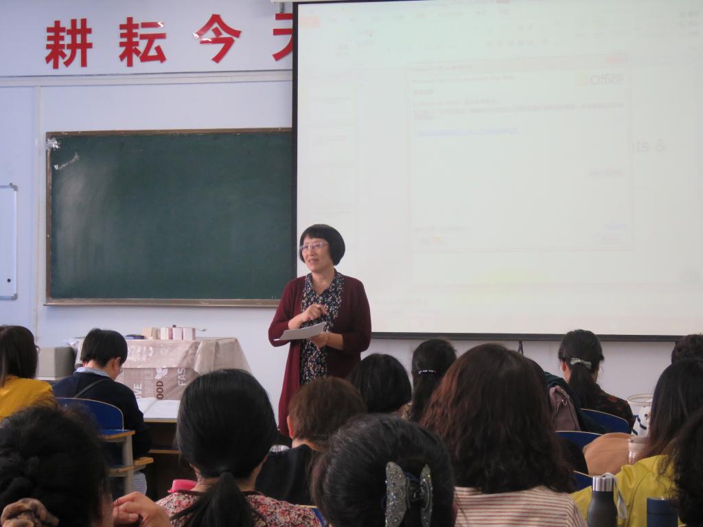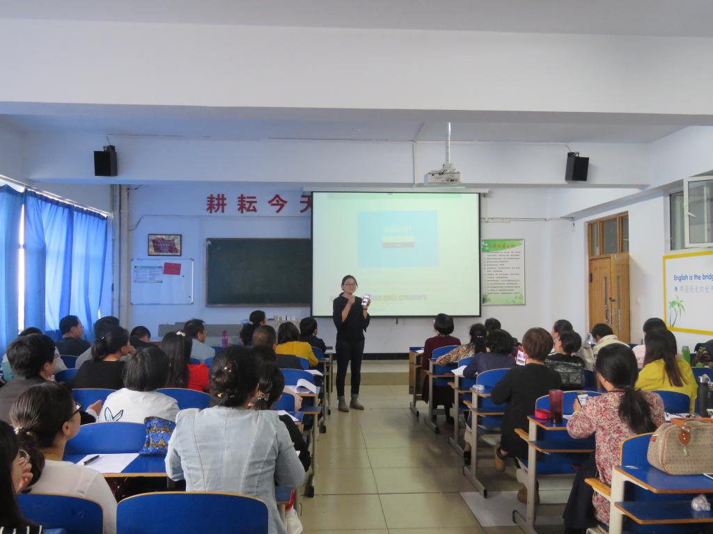 袁晓伟分享的主题是学生心理与学习动机。主要分析了影响学生学习的多种因素,探讨了根据学生实际情况,教师在言行和教学方法方面如何激发学生的学习动机。通过分享,使老师们更进一步理解了教师在钻研教材、设计教学思路、选用教学方法的同时,还应关注学生的需求、个体差异和心理。乔晋芳分享的主题是科技在语言教学中的使用(Technology in Language Teaching)。详细介绍了英语教师备课资源的网站以及如何利用手机App将线下教学与线上学习相结合,并在现场作了示范。