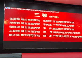 2024年11月15日至18日,第十三届高校英语教育师范生教学技能测试与交流展示活动在黄冈师范学院举办。此次比赛旨在提高英语教育专业师范生的教学技能水平,培养学生的创新意识,促进学科发展,打造“高素质、专业化、创新型”的教师队伍。