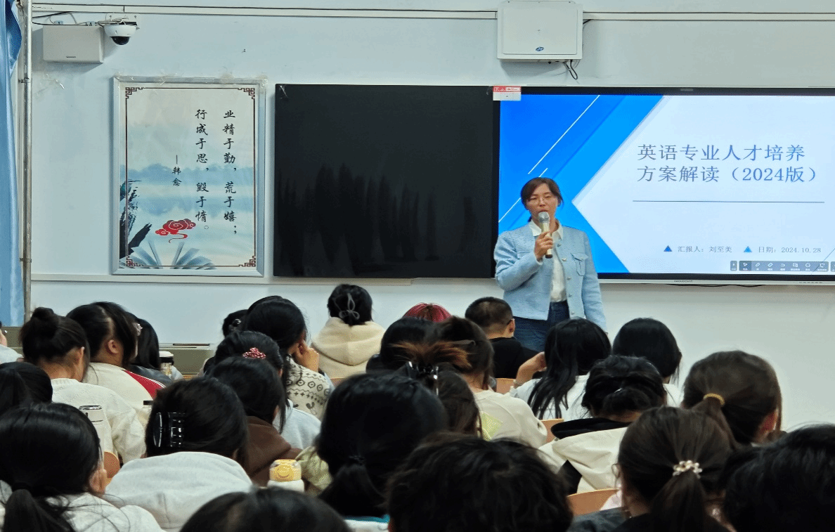 为了进一步优化人才培养结构,提升教育教学质量,2024年10月28日,在主教楼501教室,外国语学院举办了一场关于人才培养方案解读的专题讲座。