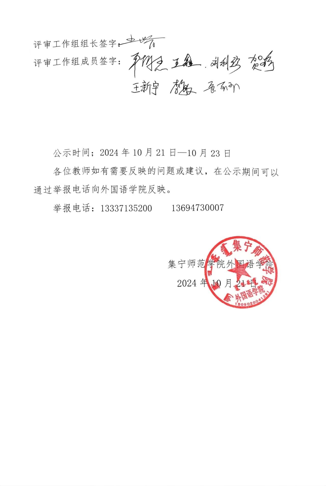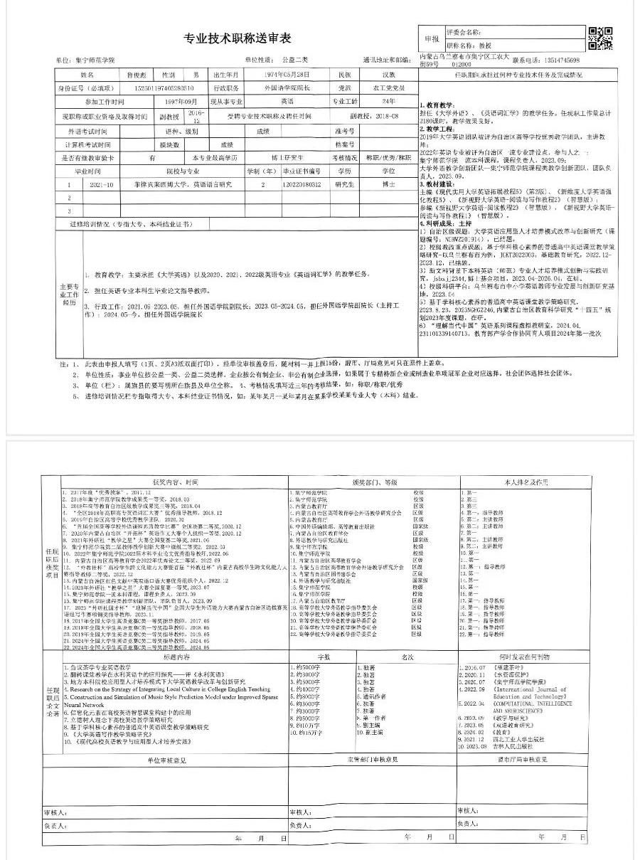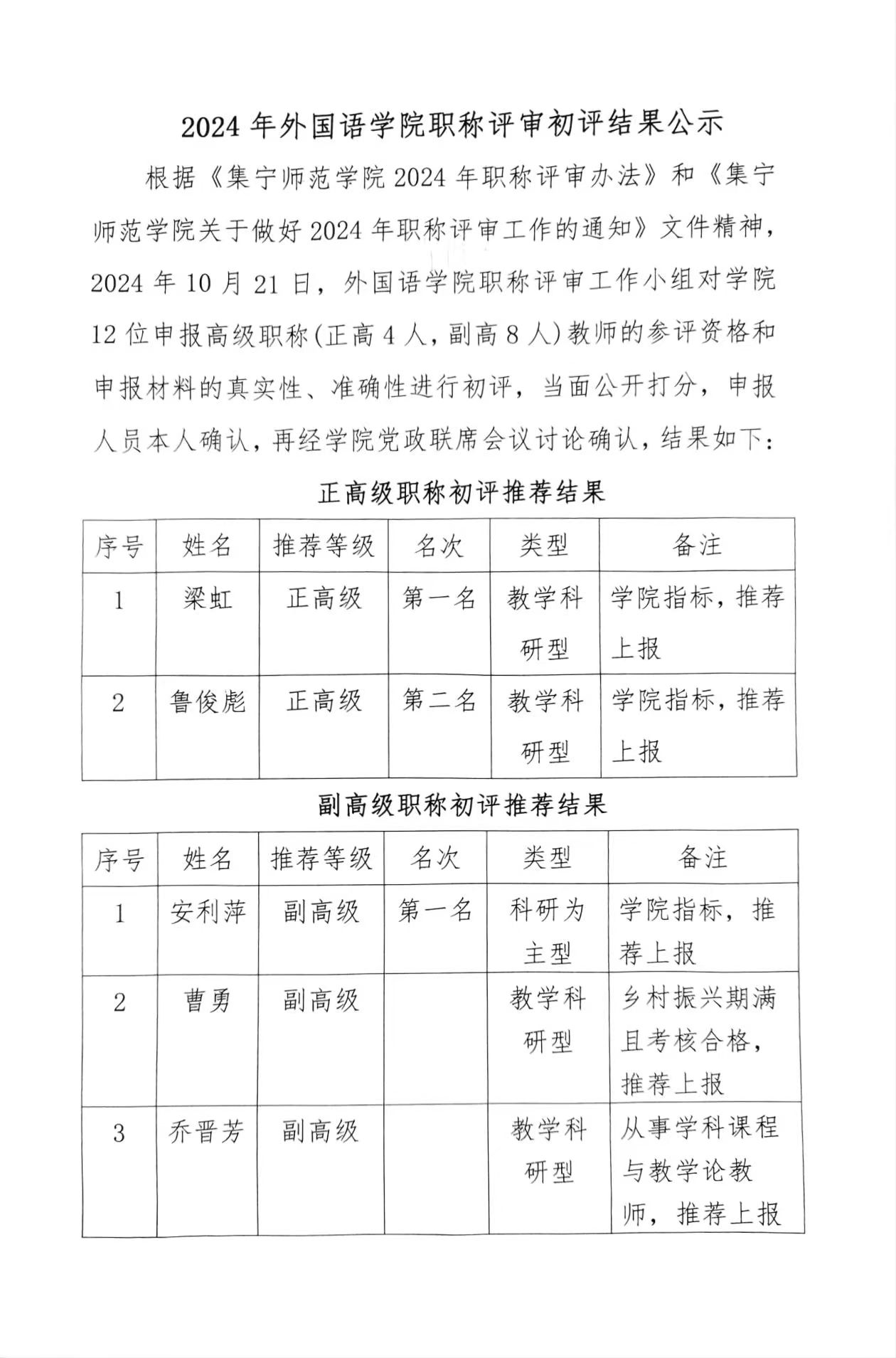外国语学院2024年职称评审公示
