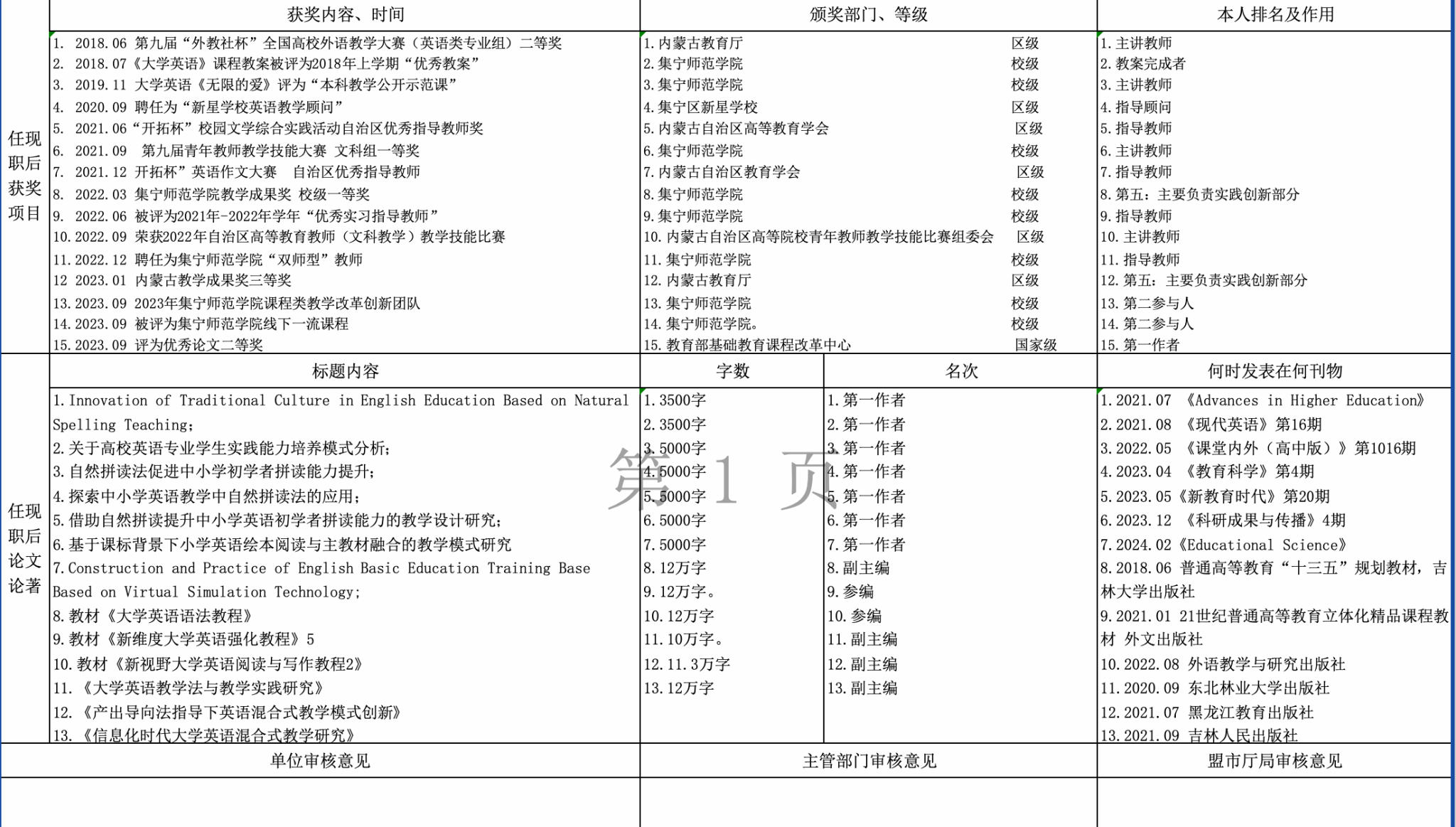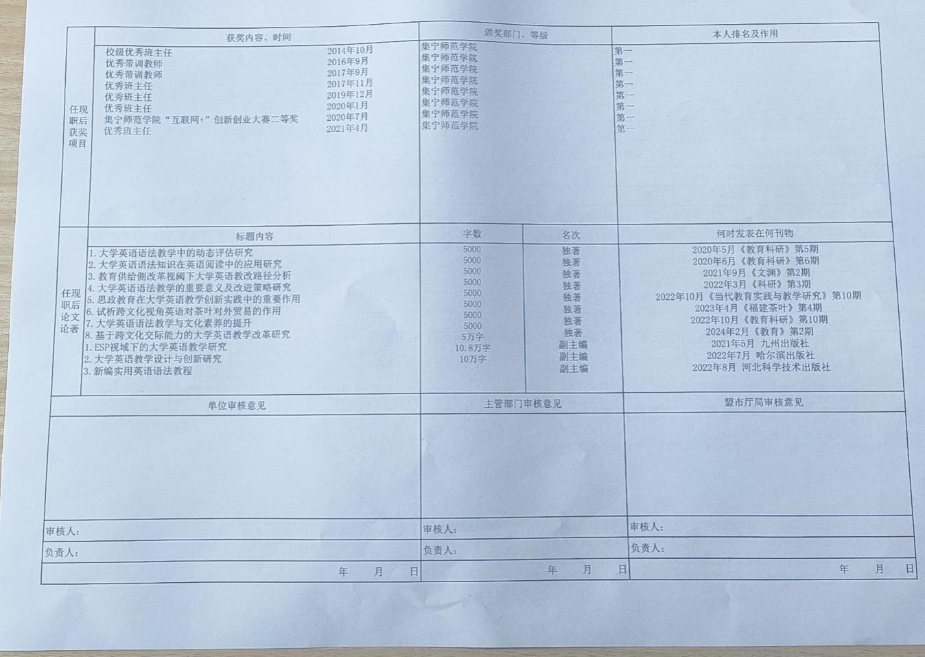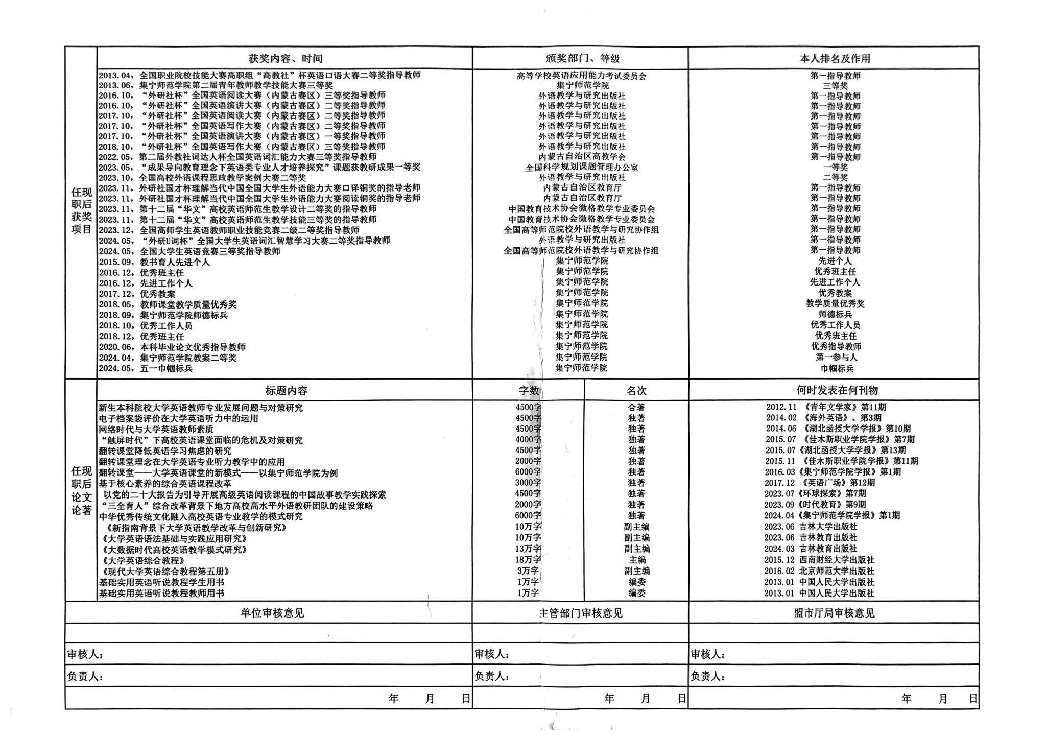 外国语学院2024年职称评审公示