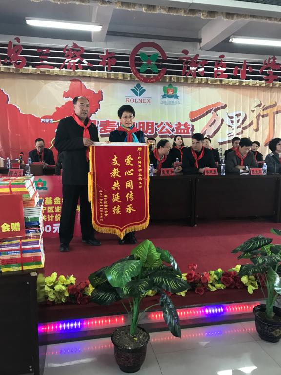 从2015年12月起,在校团委和我系党总支的指导下,我系团总支、学生党支部联合正式把集宁区谢臣小学留守儿童作为我系志愿者长期服务帮扶对象。每周六日分别组织我系学生党员、入党积极分子、团员青年到谢臣小学为留守儿童进行作业辅导、生活自理能力帮扶等志愿者服务,传递爱心。2016年我们还在4.23读书月系列活动中,号召系里老师同学们为他们捐赠了近100本书。2016年11月10日,在“阅读点亮人生”启明公益万里行谢臣小学图书捐赠仪式上,谢臣小学校长将一面“支教共延续 爱心同传承”的锦旗赠予外语系党总支,对外语系党总支一年来开展的志愿服务活动表示感谢。这项工作我们现在依旧在延续,到目前为止,我系志愿者到谢臣小学服务人数达200多人,共计服务40多次。