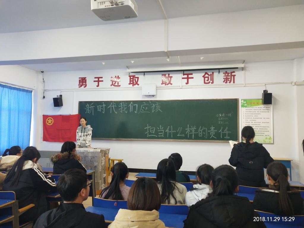 根据全区高校组织开展的“我的肩膀—能挑多重的担子?”主题讨论及实践活动暨全区首届大学生文化艺术活动月的方案,围绕习近平关于青年的重要论述,11月29日下午,我院团总支组织开展了“新时代我该担什么样的责任”的主题团日活动。共有5个团支部,170多人参加,这次活动的形式多样,内容丰富。