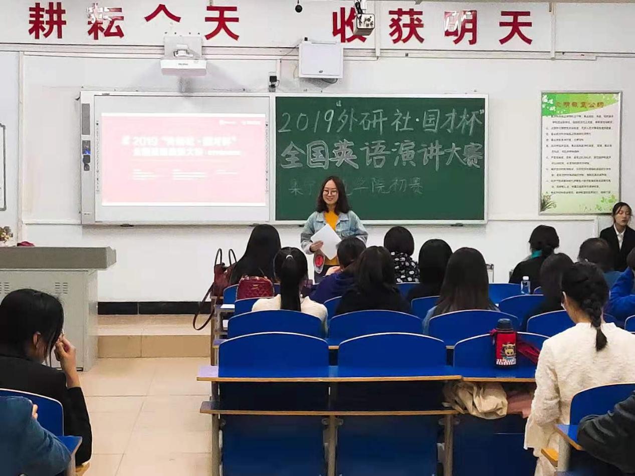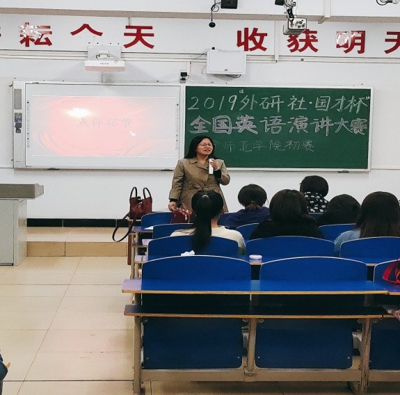 为提升世界杯官网大学生的英语实际应用能力,丰富同学们的课余生活,由外国语学院院团总支主办,学生会社团部承办的2019年“外研社·国才杯”英语演讲比赛2026世界杯官方合作网站决赛于10月10日在主教楼Z519教室正式拉开帷幕。外国语学院李红梅、赵红霞、鲁俊彪、丁慧、刘翠娟、刘利珍六位老师担任评委。学生会主席及团总支副书记均列席观看。众多热爱英语演讲的同学们观摩了此次比赛。