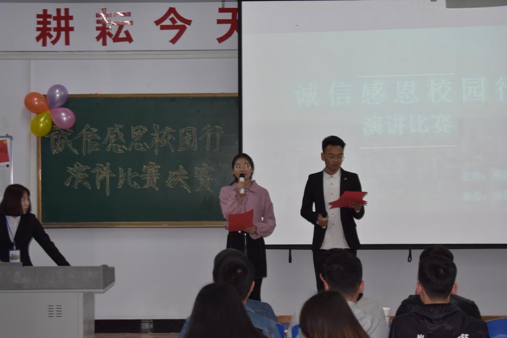 为了给我院学生搭建一个培养思辨能力,展现综合风采的舞台,丰富同学们的课余生活,由我院学工办主办,学生会社团部承办的“诚信感恩校园行”演讲大赛于4月11日在主教楼519举办。其中演讲比赛由各学院主席团担任评委。经过初赛、决赛两个环节的激烈角逐,最终由赵嘉伟同学荣获一等奖。卢泽敏、甄帅、赵冬雪同学荣获二等奖。袁娴娴、李思敏、董雪婷、孙涛、张喜林同学荣获三等奖。得分最高的两位同学将代表我院参加校级演讲比赛。