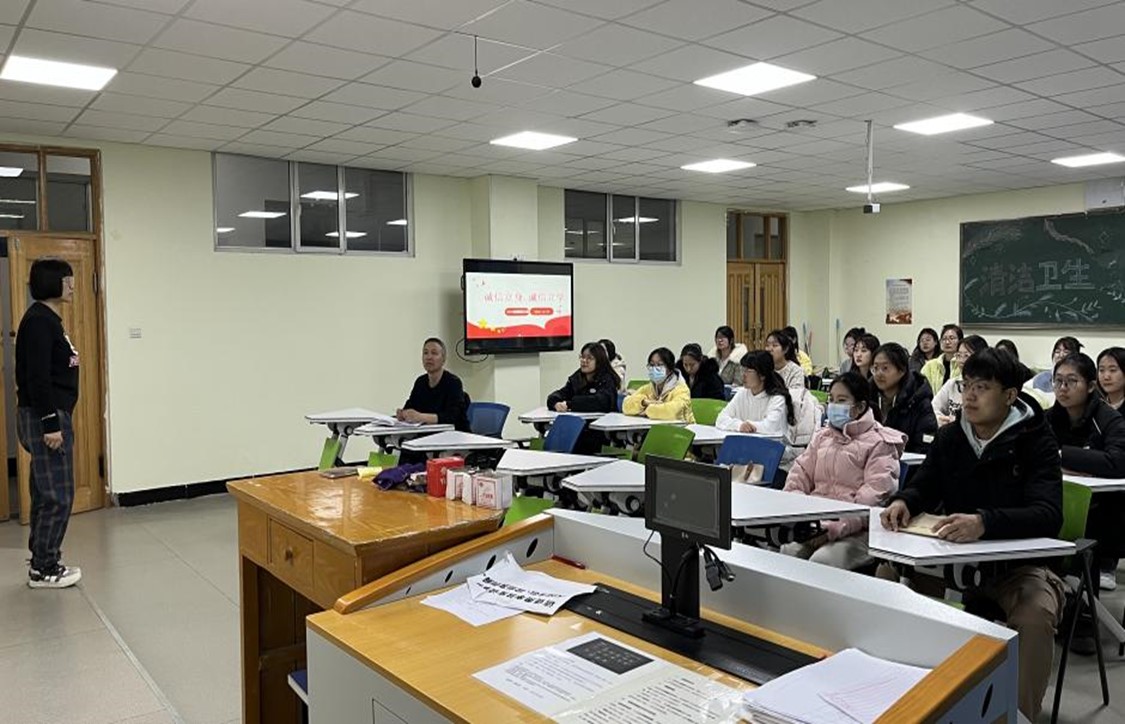 外国语学院各班在十二月下旬有序开展了以“诚信立身,诚信立学”为主题的班会活动。此次班会中,各班结合公益短片,名人名言,诚信小故事等内容,加强学生诚信教育,引导学生树立“说诚信话、办诚信事、做诚信人”的诚信观念,号召学生自我教育、自我完善,自觉加强诚信建设。牢固树立诚信为本,操守为重,守信光荣、失信可耻的信用意识和道德观念,在日常生活和学习中以诚待人。并结合即将到来的期末考试,加深学生对诚信应考的认识,教育学生要树品行之典,立诚信之范“对自己负责,对他人尊重,为自己的勤奋学习做出最好的承诺”。
