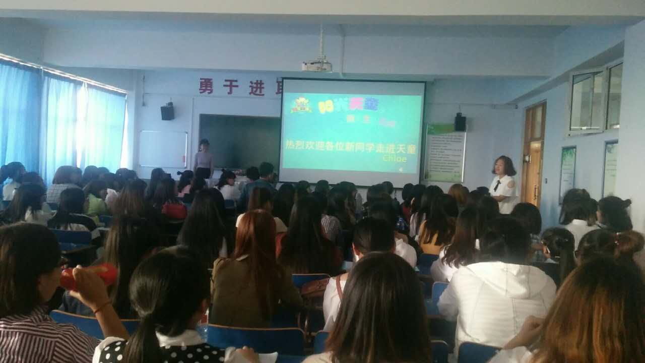 2017年9月4日下午3点,在我系教室417,天童教育面向我系2015级英语教育的学生开展了一次精彩的讲座,王老师分别向我系学生介绍了天童教育的发展以及未来的发展趋势,让同学们进一步的了解到天童教育。同学们还学习到了如何去当一名优秀的小学英语老师和怎样与孩子沟通。在讲座过程中,同学们与老师踊跃互动,积极发问,解答了自己心中关于就业的疑惑。这次讲座给同学们带来了较为重大的影响,同学们再一次确定了自己未来的发展方向以及奋斗的目标,获得了前进的动力。