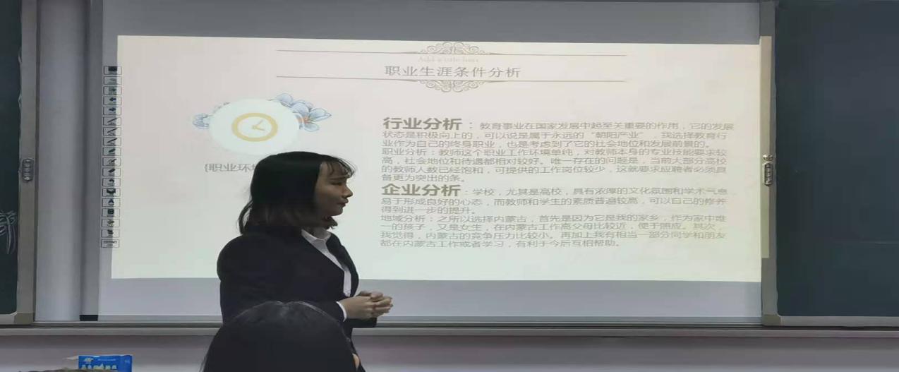 选手们通过PPT演示,从自我认知、职业环境分析、职业目标确定、评估与调整几个方面尽情抒发了自己的职业规划,在场观众认真聆听,积极思考,充分展现了当代学子朝气蓬勃的精神风貌和锐意进取的新形象。