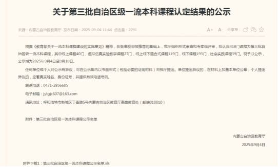 近日,自治区教育厅公布了第三批自治区级一流本科课程认定结果,我院《大学外语(一)》入选线上线下混合式一流课程;《英国文学》《高级英语》《翻译理论与实践》3门课程入选线下一流课程。本次入选课程门数实现了历史性突破,标志着我院在深化教育教学改革、推动课程创新与质量提升、推进 “新文科” 建设方面迈上了新台阶。