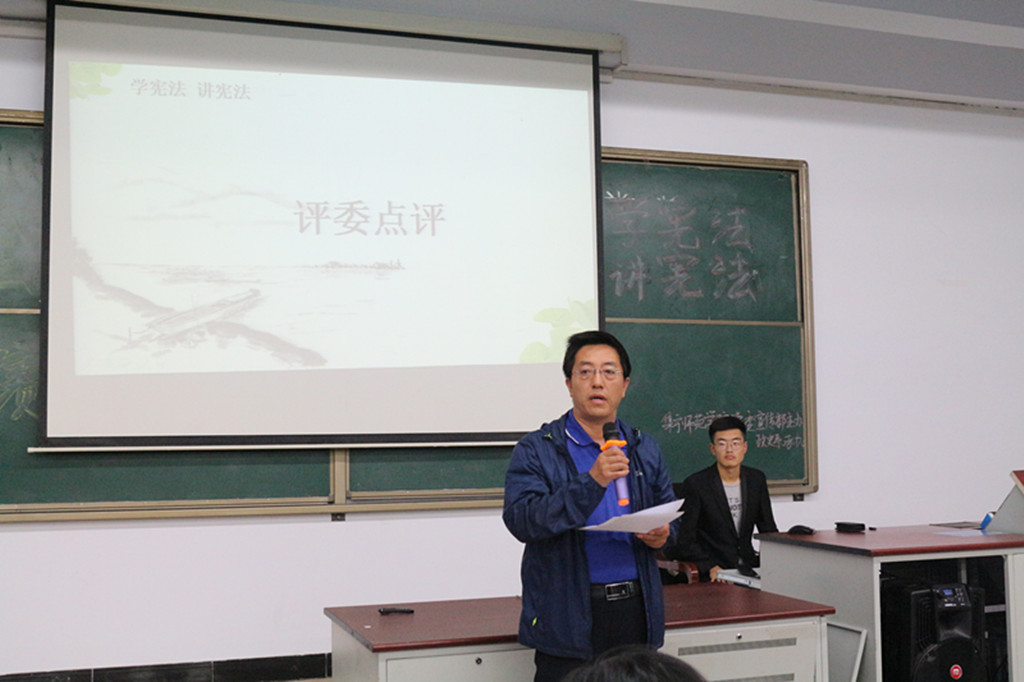 武勇从演讲稿和演讲技巧等方面对演讲比赛作了精彩点评。学校将推荐优秀选手代表学校参加内蒙古自治区教育厅组织的“学宪法讲宪法”演讲比赛。