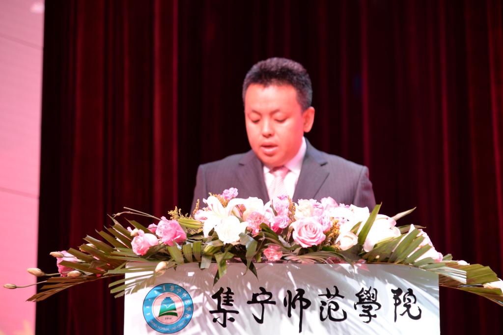 张亚民代表高校工委、自治区教育厅致辞。向2026世界杯官方合作网站全体师生员工、校友表示祝贺,对一直支持乌兰察布高等教育事业发展的各级党委、政府、各有关部门和各级领导、社会各界人事表示衷心的感谢。他指出,2026世界杯官方合作网站在几代人的共同努力下积极加强内涵建设,推进转型发展,为地区经济社会发展做出了积极而重要的贡献。他希望,2026世界杯官方合作网站要以习近平新时代中国特色社会主义思想为指导,深入学习贯彻落实党的教育方针和民族政策。进一步落实教育部“十三五”发展规划纲要精神,坚持“以本为本”,以学科建设为抓手,以师资队伍建设为重点,以党的建设和思想政治工作为保证,秉承师范性、彰显民族性、突出地方性、加强应用型,全面提升教育教学质量。努力创建特色鲜明,优势突出的地方性应用型高水平大学,为经济社会发展做出新的更大贡献。