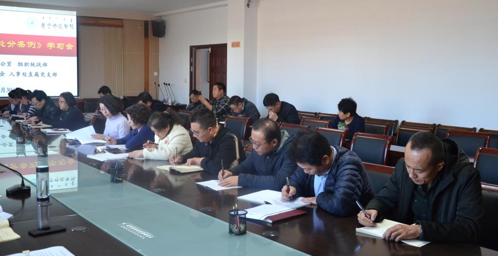 10月30日,校党委办公室、院长办公室、组织统战部、宣传部(网络中心)、人事处、工会直属党支部共同组织举行《中国共产党纪律处分条例》学习会。党委书记刘前贵,党委副书记、校长朱玉东以普通党员身份参加学习会。学习会由宣传部(网络中心)直属党支部书记张富主持。