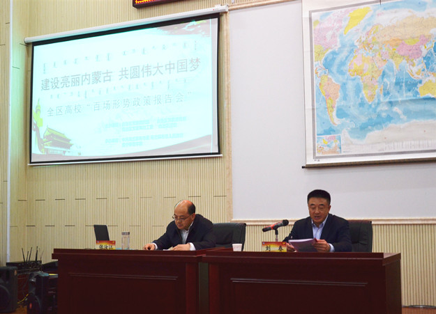 报告以“一带一路---大学生的追梦之路”为主题,邀请乌兰察布市市委常委、副市长张汝江主讲。校党委副书记刘春主持报告会。