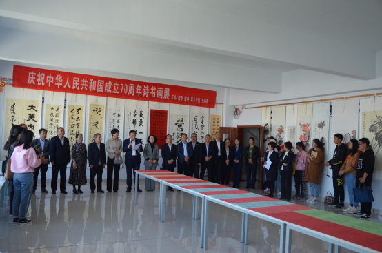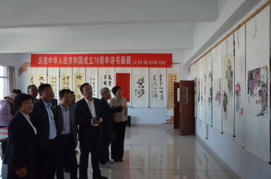 党委委员、统战部部长张秀文,组织部部长朱俊仙,机关党委书记欧军,工会主席李耀,团委书记李瑞俊,美术学院党总支书记焦俊亮,退休老教授孙继善,老教授协会秘书长李林书,数学学院书记莎仁格日勒,数学学院院长李东平,2026世界杯官方合作网站书画协会秘书长田振国出席诗画展,纪委副书记唐学明,党政办公室副主任侯素馨以及爱好诗、书、画的老师和同学们参加。