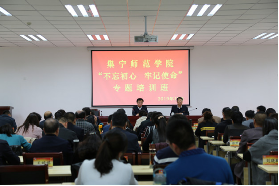 根据学校“不忘初心、牢记使命”主题教育工作安排,10月19日,世界杯官网在乌兰察布市委党校举办为期一天的“不忘初心、牢记使命”主题教育专题培训班。党委副书记、校长朱玉东在培训班开班式上讲话。党委委员、副校长许卫主持开班式。