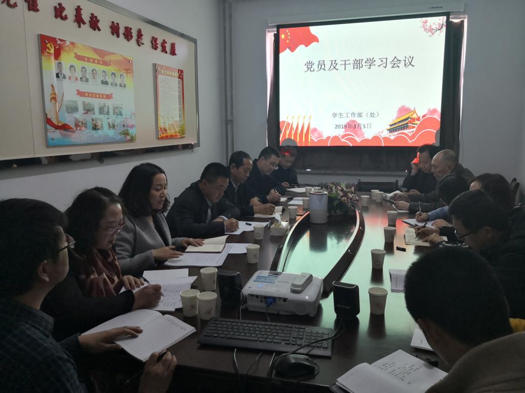 3月5日下午,学生工作部(处)组织全体党员和科级及以上干部召开学习会议。会议由学生工作部(处)副部长额尔敦其其格主持。校党委副书记刘春参加学习。