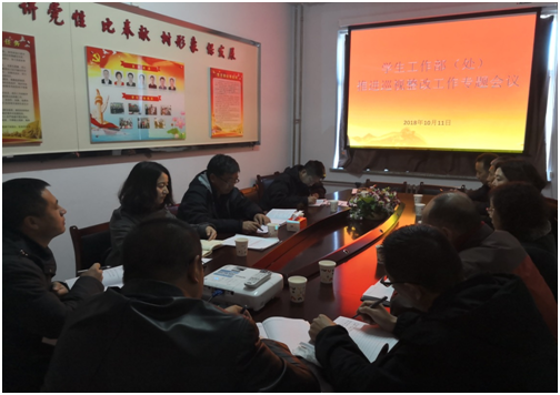2018年10月11日下午,学生工作部(处)召开“推进巡视整改工作”专题会议,全体党员和副科级及以上干部参加会议。会议由党总支书记宋勤主持。