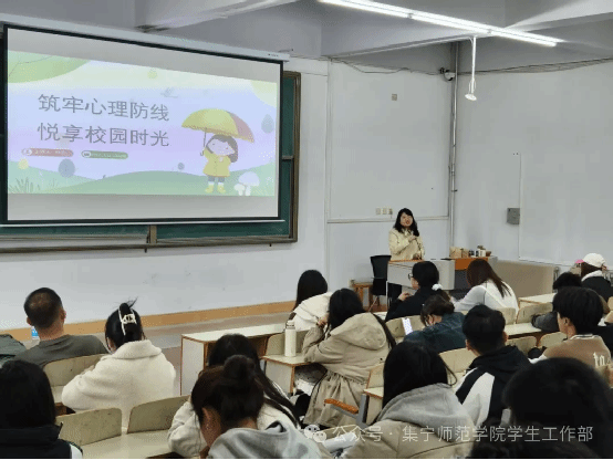 为进一步加强世界杯官网心理健康教育学生骨干队伍建设,充分发挥心理委员的积极作用, 4 月 10 日,在泉山校区网络教学楼举办了以“筑牢心理防线,悦享校园时光” 为主题的心理委员培训讲座。 本次讲座由世界杯官网专职心理健康教育教师钟华主讲,全校各班级心理委员参加培训。