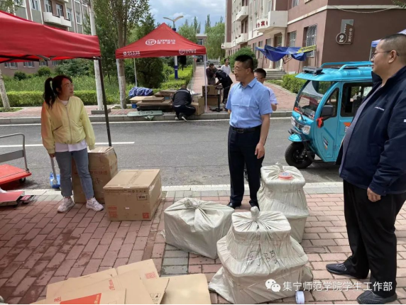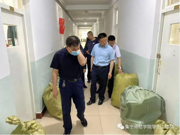 在学生公寓楼,实地查看了学生行李物品整理打包情况、清理宿舍废旧物品情况和消除安全隐患情况。并对各二级学院相关领导、辅导员、班主任深入宿舍,帮助毕业生整理邮寄的责任心和无私奉献精神给予表扬,并要求教师们把行李整理打包做为毕业生的最后一堂思政课,加深学校、老师和毕业生之间的感情,叮嘱要尽可能满足毕业生的需求,确保行李物品完整齐全的邮寄到毕业生手中,圆满完成毕业生行李物品整理邮寄工作。