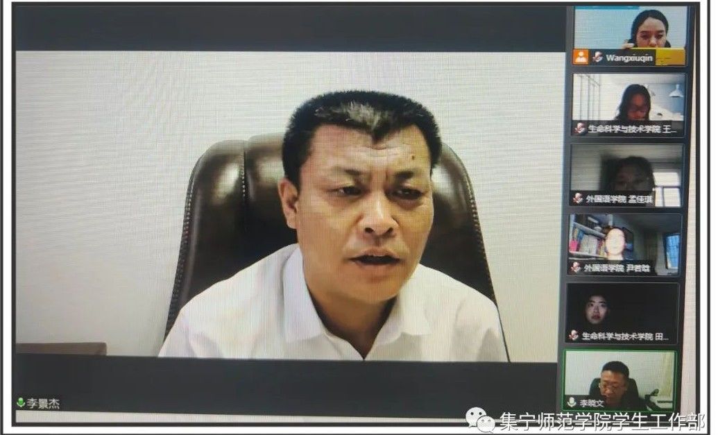 会上,李景杰与参会同学们亲切交流,认真听取同学们的发言,详细了解了班级整体学习状况、健康状况以及线上活动开展等情况。并从班级建设、学生成长等方面给予指导,叮嘱同学们严格遵守疫情防控各项管理要求,做好个人防护措施。勉励同学们要时刻保持积极乐观的心态,学好知识、打牢基础,不断增强自律意识,做到防疫与学习两不误,强化实践锻炼,努力提高自己分析问题、解决问题的实践能力,全面发展自己,在青春岁月中牢记历史使命,不负韶华。