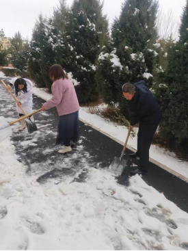 近日,积雪造成了师生行走困难。为解决该问题,