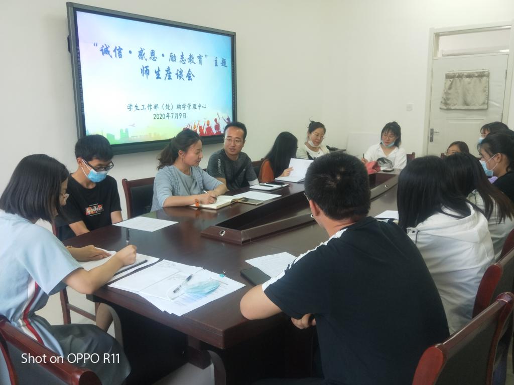 与会师生围绕座谈提纲踊跃发言,谈了自己对诚信、感恩、励志等内容的认识感悟,还提出了对学校助学管理工作的一些意见、建议。