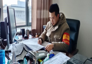 “你好,请测量体温”,每天无数遍的重复着这句话,给每一位出入的人员测量体温和详细登记。从早到晚一直重复着同样的工作,但是,姜策丝毫不敢放松,一直紧绷着工作要细致、细微的这根弦。稍有空闲,他就会帮助社区工作人员开展其他工作,防控物资的发放、登记材料的整理、防控信息的汇总,他像一只陀螺,一直在辖区防控工作中旋转。