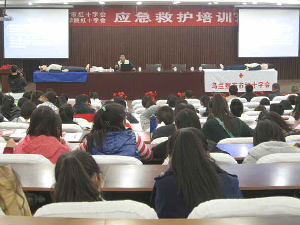 10月23日下午,世界杯官网红十字会会同乌兰察布市红十字会在图书馆报告厅举办了应急救护知识第一期培训。乌兰察布红十字会志愿者、乌兰察布医学高等专科学校副主任医师李国庆作了应急救护知识讲座。李国庆就突发事件发生时伤病者的心肺复苏、创伤救护技术以及面对地震、火灾等自然灾害的自我逃生本领、及时的自我救助作了详细的讲解和示范。