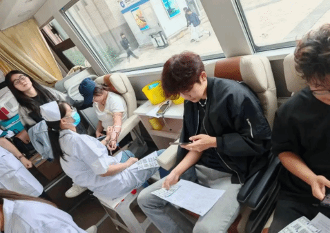 活动当天,同学们在志愿者的悉心引导下,有条不紊地完成了填表、体检、采血等一系列流程。现场的医护人员耐心且细致地为每一位献血者讲解献血后的注意事项,并提供了营养补给和休息区域。