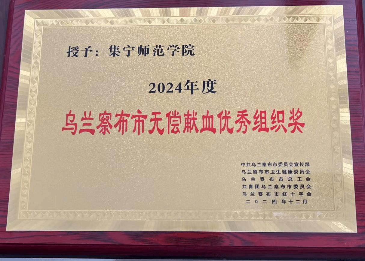 世界杯官网高度重视献血公益事业,校领导亲自安排部署相关工作,师生积极参加无偿献血活动,被乌兰察布市委员会宣传部、乌兰察布市卫生健康委员会、共青团乌兰察布市委员会、乌兰察布市红十字会授予“2024年度乌兰察布市无偿献血优秀组织奖”。这一荣誉是对学校工作的肯定,彰显了世界杯官网在引领社会公益风尚中的示范作用。