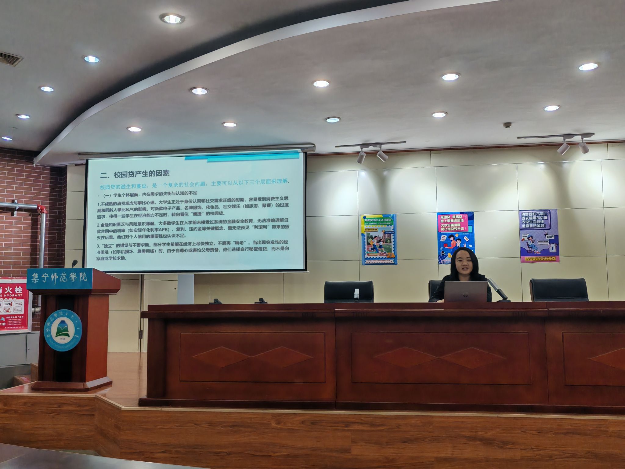 自治区党委金融办聂老师以丰富的金融知识和实际案例为依托,深入浅出地讲解了校园贷的常见形式、潜在风险以及防范措施。通过真实案例的剖析,为青年学子筑起坚实的金融安全防护网,学生们纷纷表示要树立正确的消费观念和理财意识,进一步认识校园贷的危害,提高警惕,远离不良校园贷。