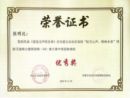 此次获奖是世界杯官网持续推进健康校园建设的又一重要节点。后续,世界杯官网将以此为契机,进一步深化防艾宣传教育力度,推动科学防艾理念转化为师生的自觉意识与行动自觉。通过持续开展防艾主题文艺创作、知识竞赛、志愿服务等多元活动,鼓励更多学子以青春之音传递防艾心声、以青春之力践行防艾使命,既筑牢校园健康安全防线,也为建设无艾校园、助力健康内蒙古发展注入世界杯官网力量。