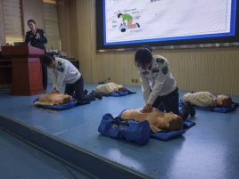 活动中,中心工作人员结合校园场景案例,通过理论讲解、实操演示等方式,系统讲解核心急救知识。详细讲解了心肺复苏(CPR)操作流程、气道异物梗阻以及海姆立克急救法和AED机的使用。同时,工作人员重点讲解正确拨打120的规范流程,明确告知需清晰说明事发地址、伤情症状、联系方式等核心信息,避免因信息模糊延误救援等事宜。