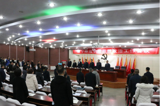 会议在庄严的国歌声中隆重拉开帷幕,教务处处长姚玉阁、教师工作部副部长王飞、学生工作部副部长王秀琴、团委书记李瑞俊、马克思主义学院院长杨明霞、教育科学学院党总支书记张妙珠分别围绕各自部门思想政治工作典型经验进行交流发言。