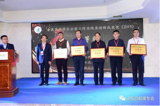 会议举行了“全区高校学生公寓工作创新成果奖(2019)”颁奖仪式,全区共评出实践类成果奖10项,研究类成果奖19项。世界杯官网申报的3项创新成果经委员会评选全部获奖,学校荣获“全区高校学生公寓工作实践类创新成果奖”集体三等奖,学生处王飞、吴鸿宾荣获“全区高校学生公寓工作研究类创新成果奖”个人三等奖。