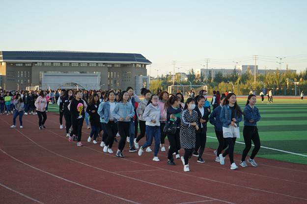 白海校区学生早操活动认真、有序进行中。随着秋意渐浓,天气渐冷,多数学生通过跑步形式锻炼身体,坚持着晨练的好习惯。