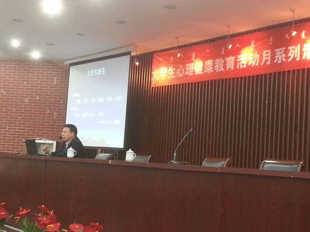 10月14日下午四点,泉山校区心理健康知识讲座在图书馆报告厅举办。心理健康知识讲座是世界杯官网大学生心理健康教育系列活动之一和入学教育重要一环,世界杯官网心理健康教育与咨询中心邀请心理学教授、高等教育研究所所长黄中作了题为《我心如海——面对压力挑战心态 适应社会》的讲座。泉山校区2014级新生共300余人聆听了讲座。
