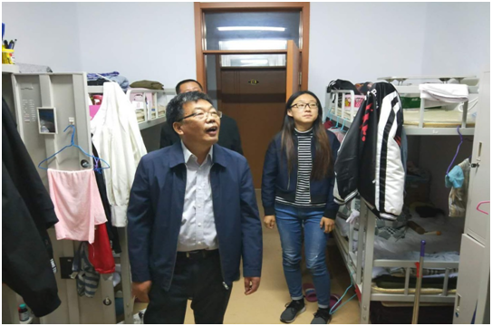 9月19日晚,学生工作部(处)党总支书记宋勤和公寓管理老师、外聘管理人员,深入虎山校区学生公寓,检查、了解学生住宿情况。