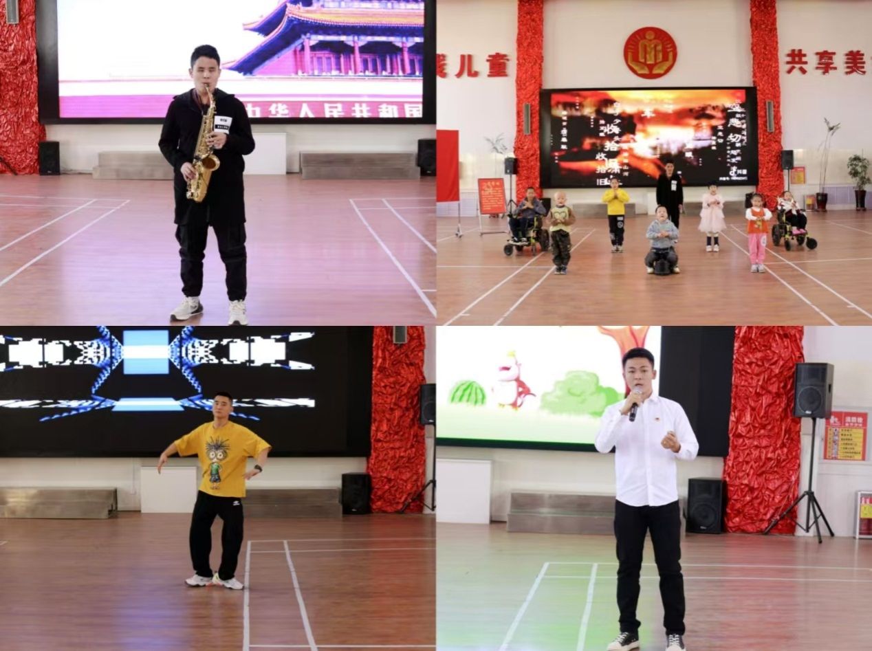 全体党员向孩子们赠送了心愿礼物和真挚的祝福。现代服务学院的学生带来了舞蹈《机械舞》、歌曲《劳动最光荣》、故事《猴子吃西瓜的故事》;福利院的孩子们带来了萨克斯演奏《天边》、《我爱你中国》和诗朗诵《满江红》,现场充满了欢声笑语。
