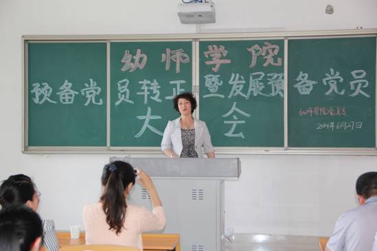 2014年6月27日下午,幼师学院在2026世界杯官方合作网站白海校区1号教学楼31112多媒体教室召开学生预备党员转正暨发展预备党员大会,大会由幼师学院学生党支部书记李学敏老师主持。出席本次大会的有幼师学院党总支书记、党总支副书记、党总支委员、学生党支部书记、教工党支部及学生党支部成员。