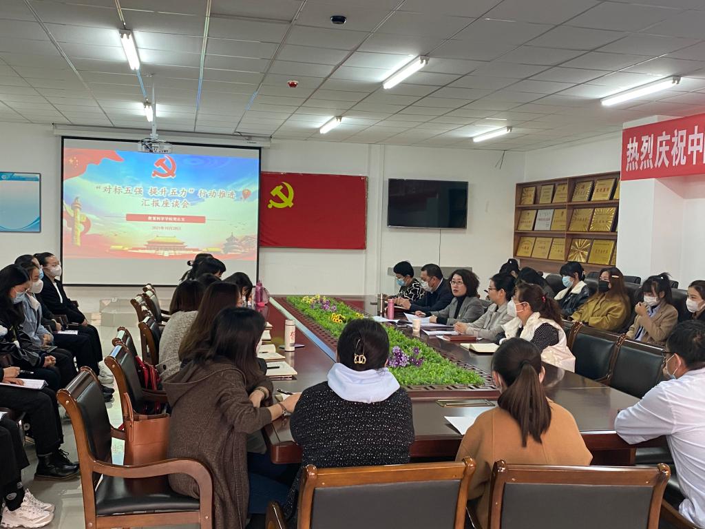 会上,教育科学学院党总支书记张妙珠就教育科学学院党总支“对标五强提升五力”行动推进情况作了汇报,既指出了亮点工作也对该项工作中存在的不足提出了新的努力方向。