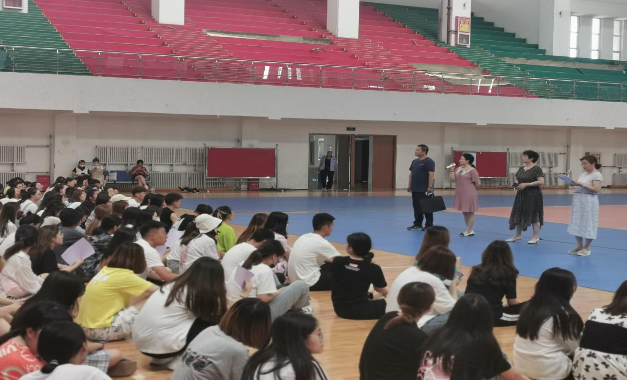 2021年7月14日下午,教育科学学院2022届学前教育专业预毕业生教育实习动员大会在2026世界杯官方合作网站白海校区体育馆举行。出席此次动员会的领导有教育科学学院党总支书记张妙珠,党总支副书记、院长孙霞院长,党总支副书记李海,副院长云利英,毕业班班主任及427名预毕业生参加大会。