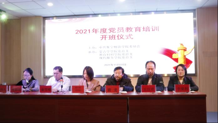 11月22日,教育科学学院党总支联合蒙古学学院党总支、现代服务学院党总支在现代服务学院一楼演播厅组织开展党员教育培训。三个学院全体师生党员、预备党员,副处级以上干部参加培训。