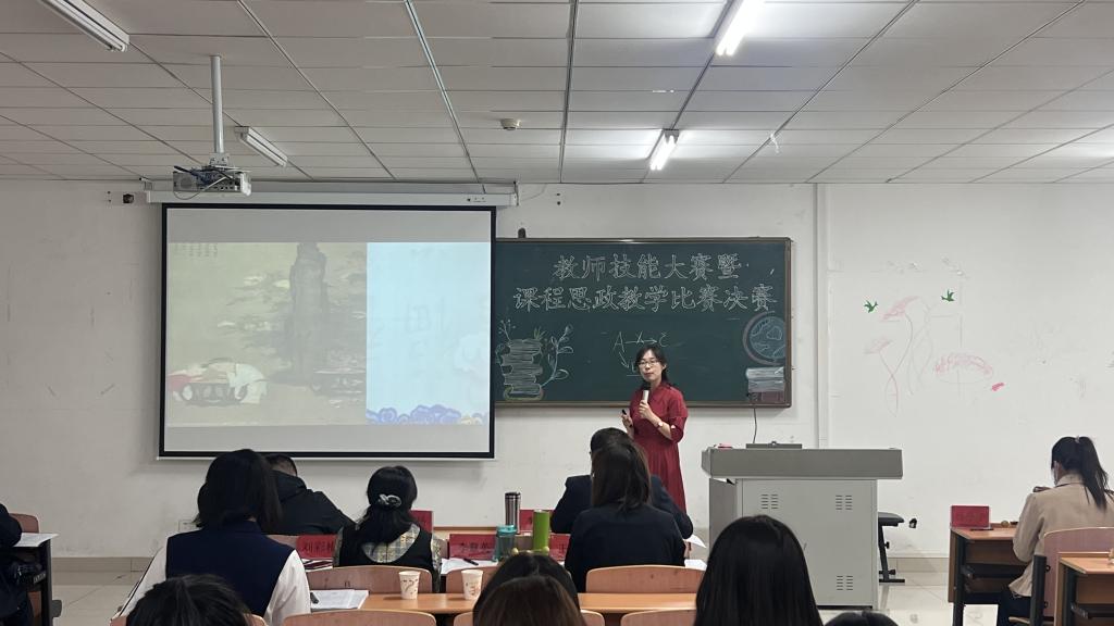 本次比赛分为两场,第一场为教师教学技能大赛,第二场为课程思政教学比赛,校督导员田振国教授及学院部分资深教师担任评委,学院全体教师参与观摩学习。