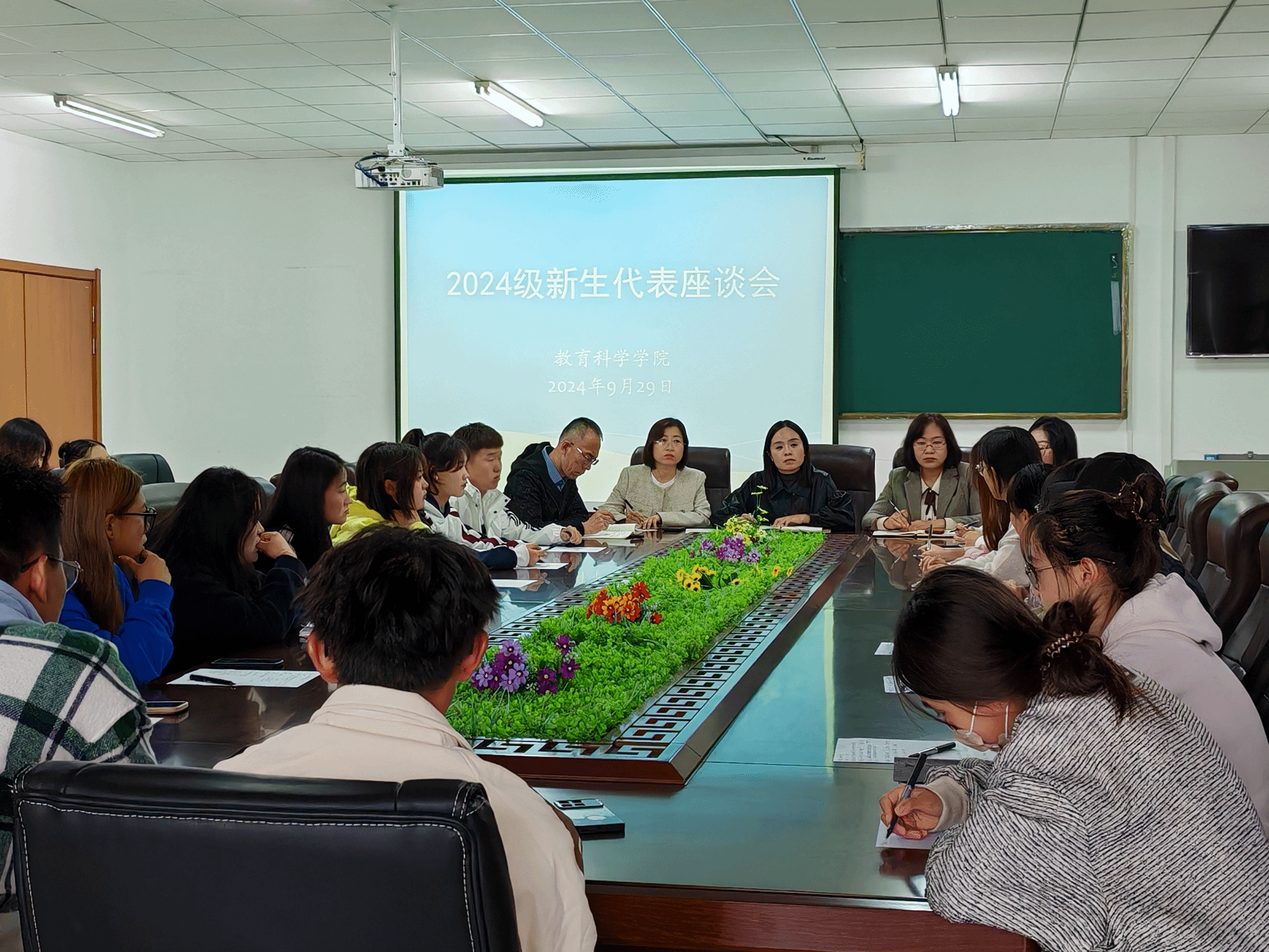 9月29日下午,教育科学学院在230会议室举办了“倾听‘新’声音,共话‘新’成长” 2024级新生代表座谈会。教育科学学院党总支书记王秀琴、院长赵晓英、副书记韩超、副院长孙俊芳,以及新生代表30余人参加了座谈会。会议由王秀琴主持。
