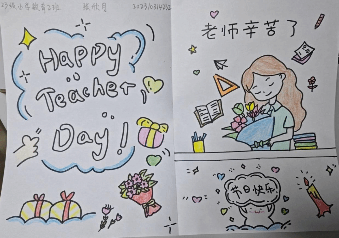 尊师重道,薪火相传;学而不厌,诲人不倦。在第40个教师节到来之际,教育科学学院学子通过征文、书法作品,贺卡、手抄报以及照片、视频等形式,生动具体且用心传达着对老师们的感恩之心。